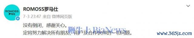 7 月 3 日,罗马仕官方微博发文呈文:"莫得倒闭,感谢祥和。定将致力处分悉数一又友、用户及融合伙伴的一切问题。"