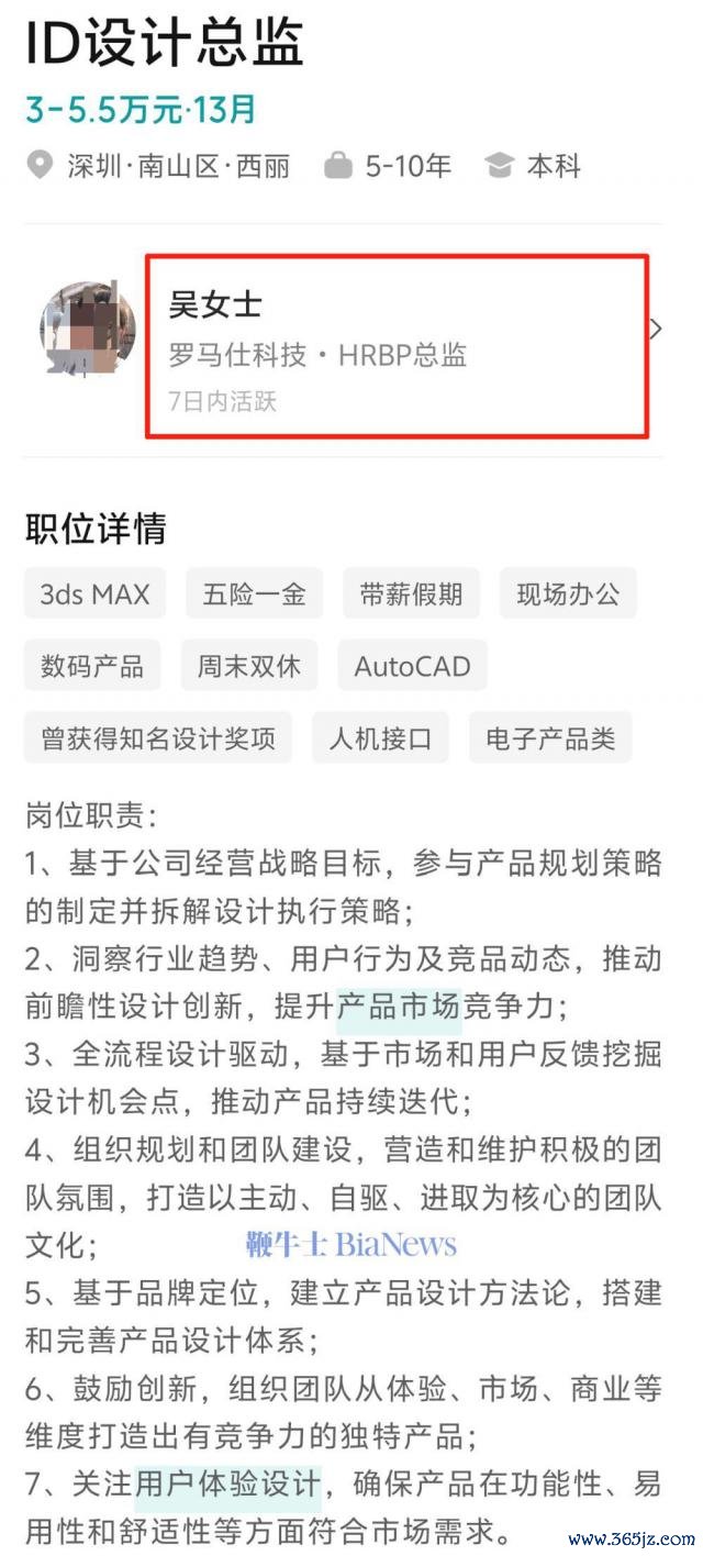 某招聘平台自满,罗马仕在招岗亭还有 ID 打算总监,薪资最高 6 万元,不外其 HRBP 总监近日并不活跃。