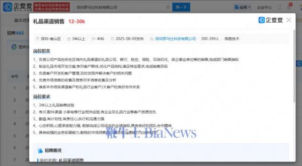 近日,深圳罗马仕科技有限公司发布一则招聘信息,岗亭为礼品渠说念销售,办公所在为深圳南山现金九游体育app平台,薪资为每月 1.2 万 -3 万。 企查查 APP 自满,该岗亭条目应聘者有 3 年以上礼品销售训戒,主要细腻公司居品在所在区域内礼品渠说念如礼品公司、银行、航空、保障、石油石化、政企功绩单元等的销售 , 完成部门销售方针等。 某招聘平台自满,罗马仕在招岗亭还有 ID 打算总监,薪资最高 6 万元,不外其 HRBP 总监近日并不活跃。 本年 6 月,罗马仕因多起充电宝自燃事件调回大量居